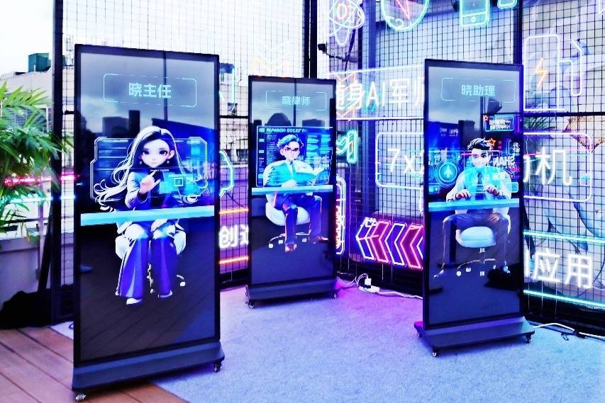 展厅里,五彩斑斓的“AI货架”展示了多款AI STORE深度赋能业务的“拳头产物”:比如,不错让文档变学问的“融会”企业智能学问库、将招聘恶果种植300%的“晓招聘”智能招聘助手,以及遍地随时可办公的“AI云电脑数字工位”……