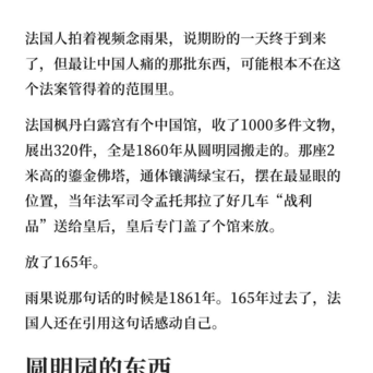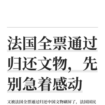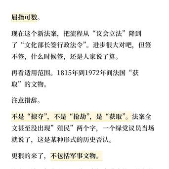 【法国全票通过反璧环物万博manbext体育官网app娱乐,先别急着感动】法国国民议会全票通过文物反璧法案,简化进程但不包括1815年到1972年间“取得”的文物,且不包括军事文物。圆明园等遑急文物的反璧仍存争议,法案未能涵盖统统历史留传问题。